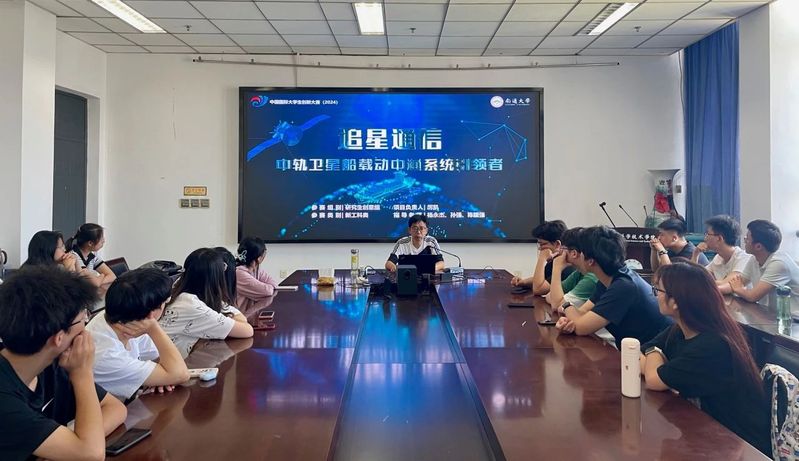 杨永杰院长结合3D动漫 “追星通信”团队与清华大学、南通先进通信研究院等单位,在空天地海一体化网络中共同研制的面向中高轨卫星的船载动中通卫星终端和广域通信服务示范平台的合作项目进行讲解。他紧密结合当前科技强国的重大战略背景,分别从空天地海一体化网络的产业背景和行业痛点进行分析,介绍了“追星通信”团队在中轨卫星船载动中通系统中的研发历程、技术壁垒、核心产品。他鼓励同学们牢记总书记嘱托,强化使命担当,心怀“国之大者”,矢志科技报国,书写为中国式现代化挺膺担当的青春篇章。