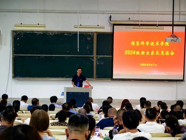 李洪均向家长介绍了电子信息工程、通信工程、物联网工程三个专业的具体情况,展示了各专业的就业方向和就业前景,加深了新生家长们对学院专业的认识。