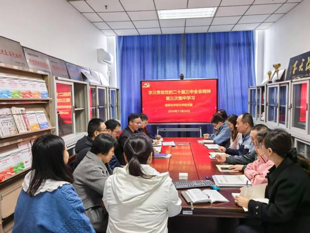 11月20日上午,3D动漫 召开党的二十届三中全会精神培训第三次集中学习会。院党委书记周平,各系负责人、支部书记,3D动漫 及智能信息技术研究中心科级干部参加会议。院党委副书记、副院长陈馥强主持培训会。