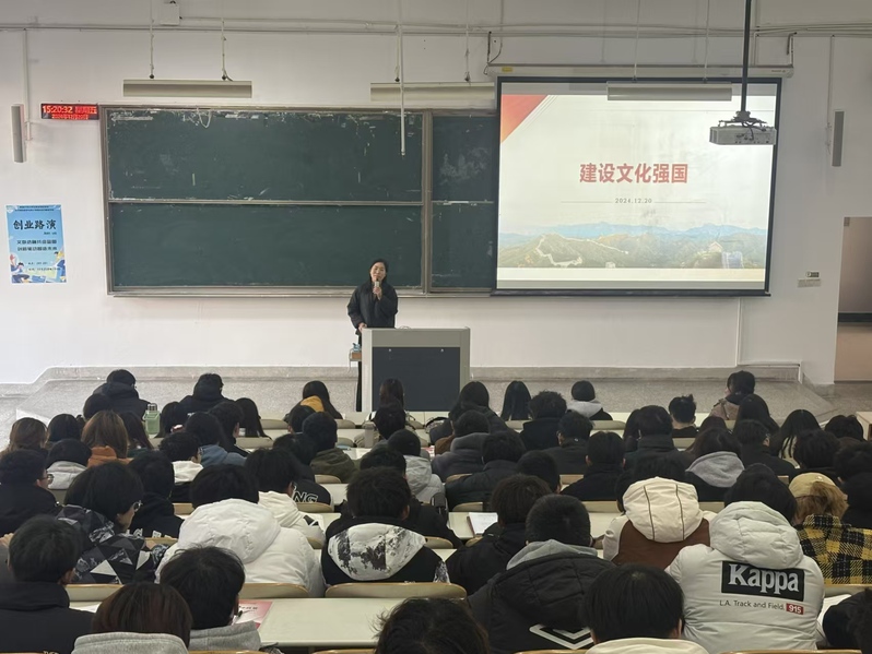 为深入学习贯彻党的二十届三中全会精神,持续推动习近平新时代中国特色社会主义思想进教材进课堂进头脑,进一步推动高校《形势与政策》课程高质量发展。12月20日,校党委常委、副校长莫晨宇以《建设文化强国》为题,为信息科学技术学院通信231、232、233、234班学生讲授了一堂精彩的形势与政策课。