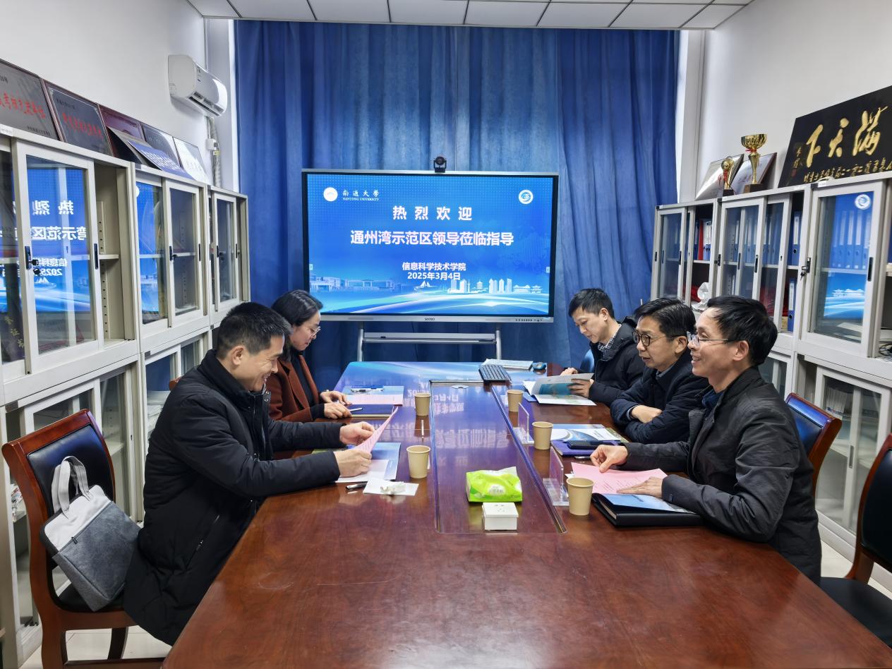 3月4日下午,通州湾示范区党工委副书记石星恺、组织人事局人才办副主任居金娟来院交流。院党委副书记、院长杨永杰,院党委书记周平,副院长孙强接待了来宾。