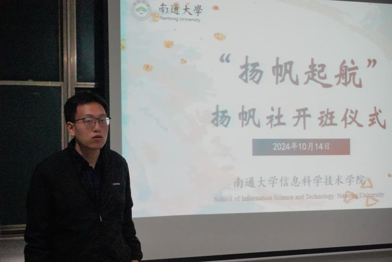 杨轶凡在“扬帆社”开班仪式中对学院本科生学分积欠情况进行了通报,强调了专业学习的重要性,同时结合思维方式、学习态度、课程重点、学习计划等方面,希望同学们能够转变学习观念,强化学习主体意识,并对后续“扬帆社”系列活动的流程进行了详细解读。