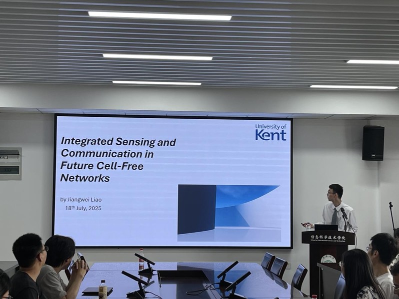 7月18日下午,应学院邀请,英国肯特大学廖江伟博士为3D动漫 师生作题为《Integrated Sensing and Communication in Future Cell-Free networks》的学术报告。英国肯特大学工程系副教授朱慧琳博士、学院相关老师及研究生代表参加报告会。会议由学院王珏教授主持。