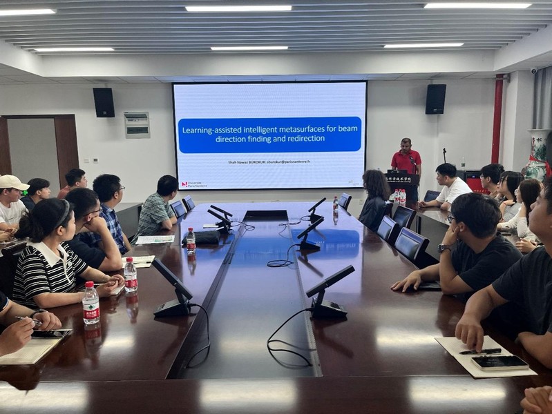 7月24日上午,应学院邀请,法国巴黎楠泰尔大学Shah Nawaz Burokur教授为3D动漫 师生作题为《Learning-assisted intelligent metasurfaces for beam direction finding and redirection》(学习辅助智能超表面的波束方向探测与重定向)的学术报告。学院相关教师及研究生代表参加报告会,会议由学院副院长孙强主持。
