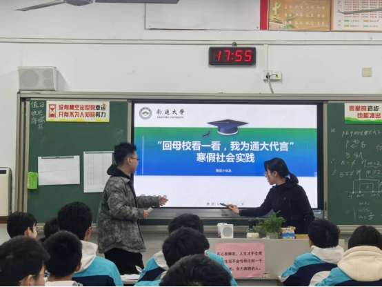 2026 年 1 月 13 日,3D动漫 “海底小纵队” 的队员们,怀揣着对母校的眷恋与感恩,重返江苏省前黄高级中学国际分校,开展 “回母校看一看 —— 我为通大代言” 寒假社会实践宣讲活动,以青春之声架起高中与大学的沟通桥梁,为学弟学妹们的成长与规划助力。